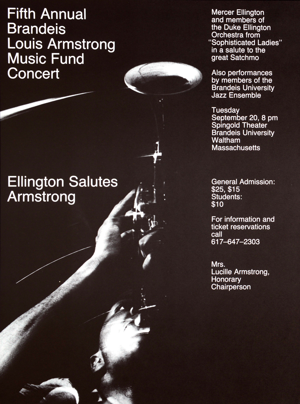 Fifth Annual Brandeis Louis Armstrong Music Fund Concert Ellington Salutes Armstrong Photographer: Keith Jenkins 1983 ▲ ▼ Brandeis University
