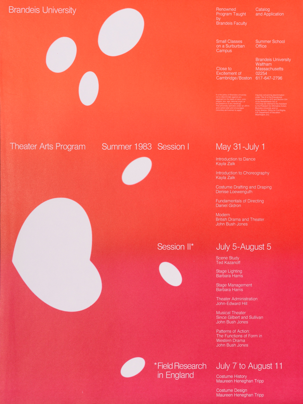 Theater Arts Program Summer Session Brandeis University Split fountain, 2 color 1983 ▲ ▼ Brandeis University